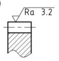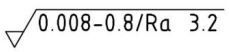 25、在表面織構符號的意義中,下列敘述何者為誤? (A)必須去除材料 (B)傳輸波域0.008-0.8 mm (C)表面粗糙度最大高度3.2 μm (D)評估長度為5倍取樣長度