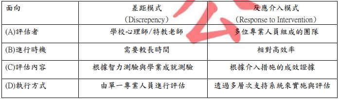 48.對於學障之鑑定,差距模式與介入反應模式之比較,下列何者錯誤?