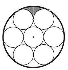三、如圖,半徑為6的大圓內部正好放置七個大小都相等的小圓彼此相切,則陰影部份的面積等於____。(5分)