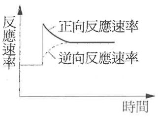 1. 已知NO₂(g)的莫耳生成熱為33.86kJ/mol,在此時平衡式N₂(g)+2O₂(g) ⇌ 2NO₂(g)若只改變下列一項變因時,有關正、逆向反應速率的變化,哪些改變可借用附圖(正向反應速率與逆向反應速率隨時間變化)加以說明?