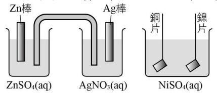 35. 如附圖所示之實驗裝置,今欲以鋅銀電池在銅片上鍍鎳,則下列敘述哪些正確?