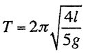 1. An elevator is accelerating upward with a constant acceleration of g/5 (g is the gravitational acceleration). A simple pendulum of length l is suspended from the ceiling of the elevator. What is the period T of the pendulum for small oscillations?