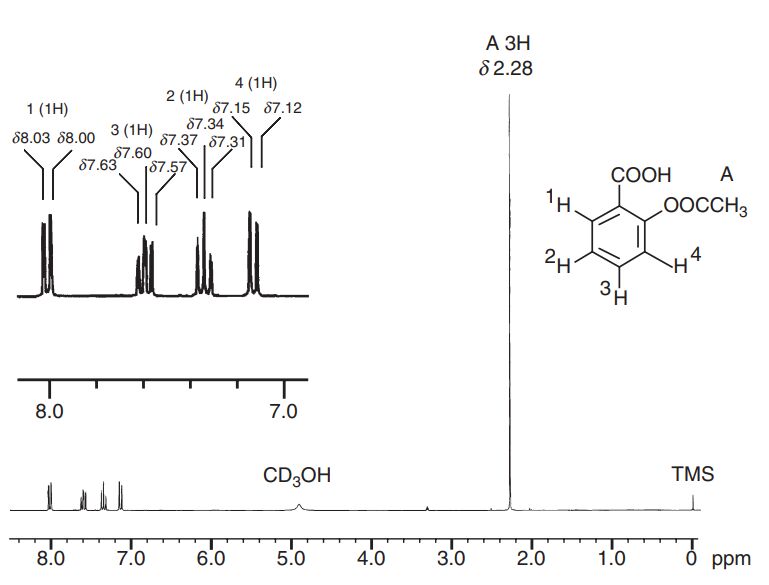 12.Aspirin之氫核磁共振譜如下圖,約在8.0 ppm的氫訊號為下列何者?