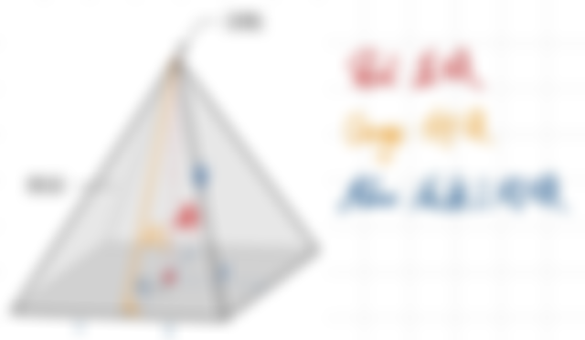 14. 有一個正四角錐,其底面邊長為2,側面腰長為4,求此四角錐的高度。