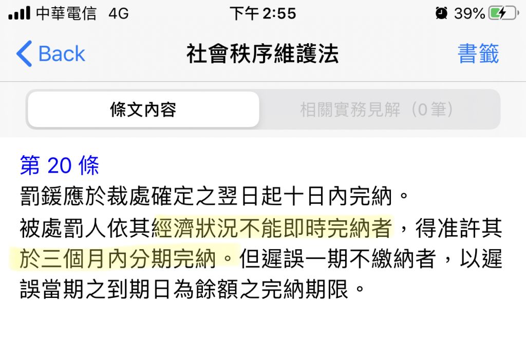 II. 被處罰人依其經濟狀況不能即時完納者,得准許其於3個月內分期完納。