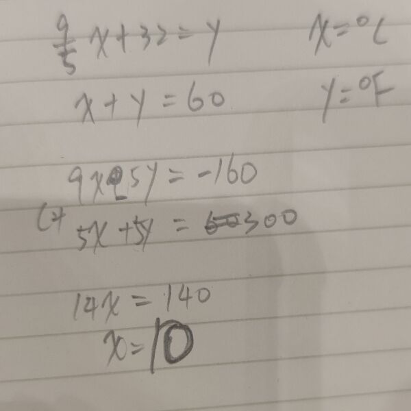 + 32 =華氏度。 請問攝氏多少度時,華氏度的值與攝氏度的值之和為 60?