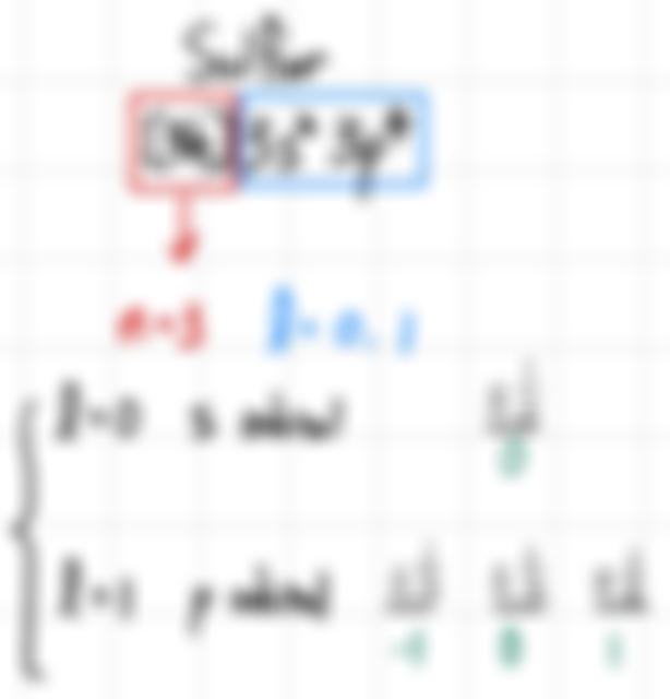 17. Which is a possible set of quantum numbers n, l, ml, ms for a valence electron of sulfur (S)?