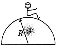 3. A boy is seated on the top of a hemispherical mound of ice (frictionless) of radius R as shown in the figure. He is given a very small push and starts sliding. What is the height of the point at which the boy leaves the ice?