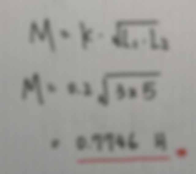 31 兩個相鄰近電感器,電感值分別為 3 亨利與 5 亨利,且兩者間的耦合係數為 0.2。試問兩者間的