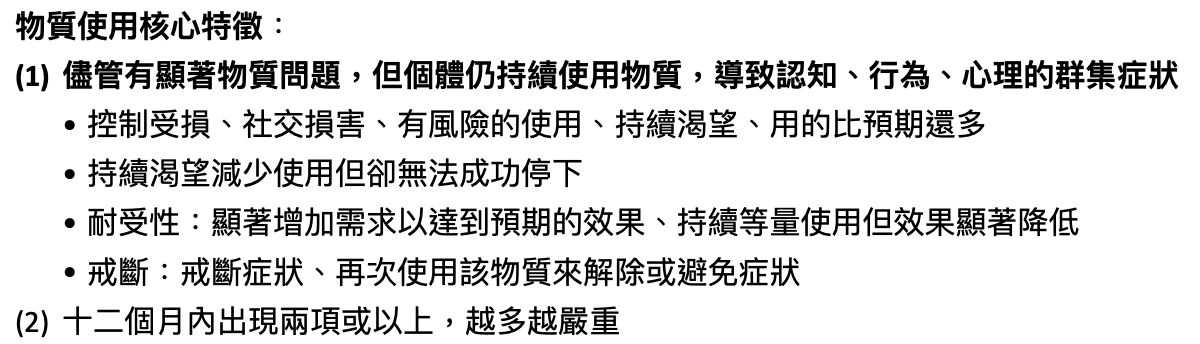 物質使用核心特徵: