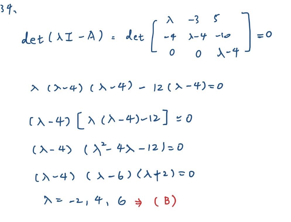 4. 若 A 是一個2✕2的實數矩陣且滿足 ,則 A 的反矩陣 =? (A)(B)(C)(D)