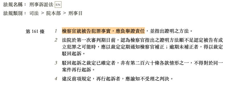 刑事訴訟法161條 檢察官就被告犯罪事實,應負舉證責任。