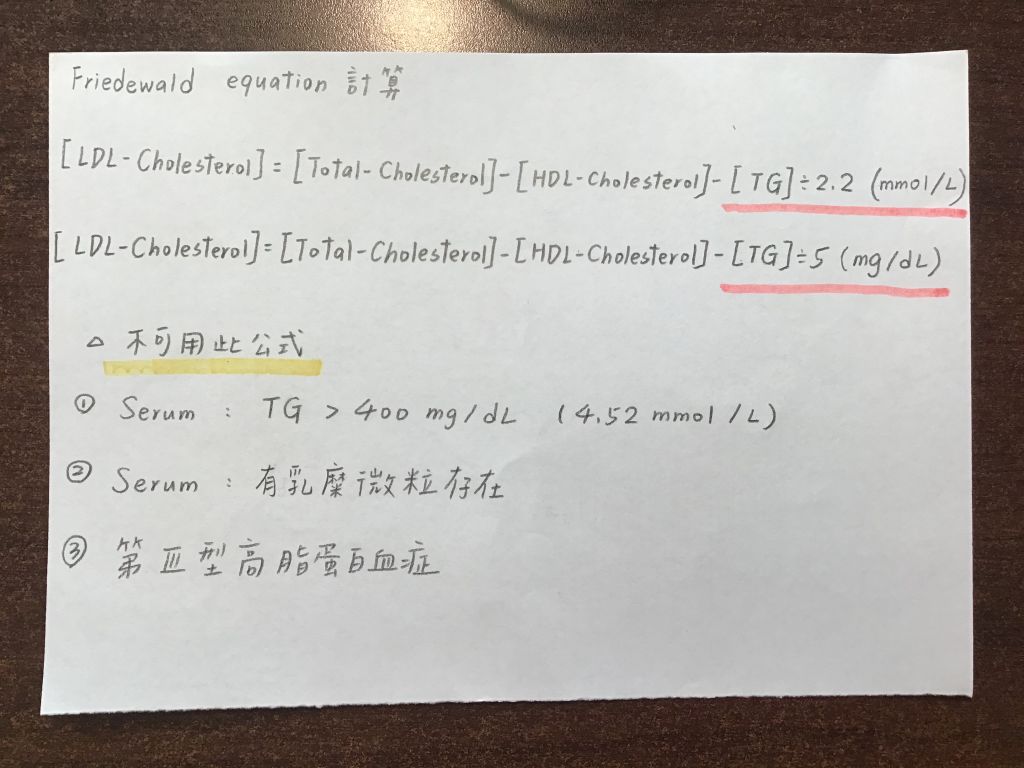 46.有關Friedewald法計算LDL-cholesterol(LDL-C),下列算式何者正確?