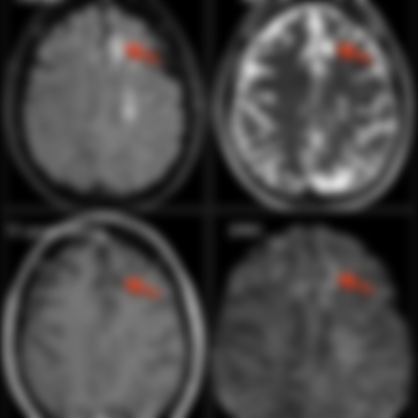 46.49歲男性平常有高血壓,因突發性右側肢體無力及麻木而就診,就診當天的無顯影劑腦部電腦斷層(non- contrast CT)檢查結果如下圖①,5天後的腦部磁振造影(MRI)檢查結果如下圖②(Fluid attenuated inversion recovery, FLAIR)及圖③無施打顯影劑之T1影像。下列何者最有可能是此病人的診斷?