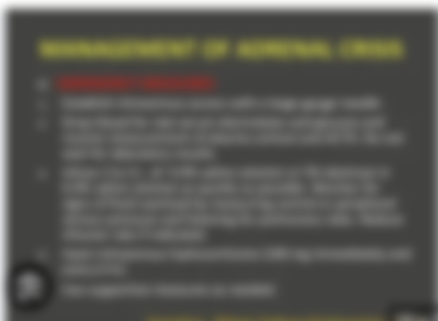 (A)立即抽血送驗cortisol,不必等報告結果出來,可立即注射糖皮質素(glucocorticoid)治療