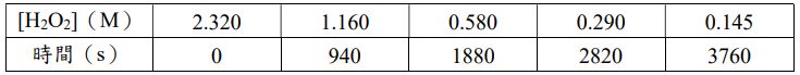 6. 雙氧水的分解反應如右:2 H2O2(aq) → 2 H2O(l) + O2(g),而[H2O2]與時間的變化情形如下表,試問 下列敘述何者正確?