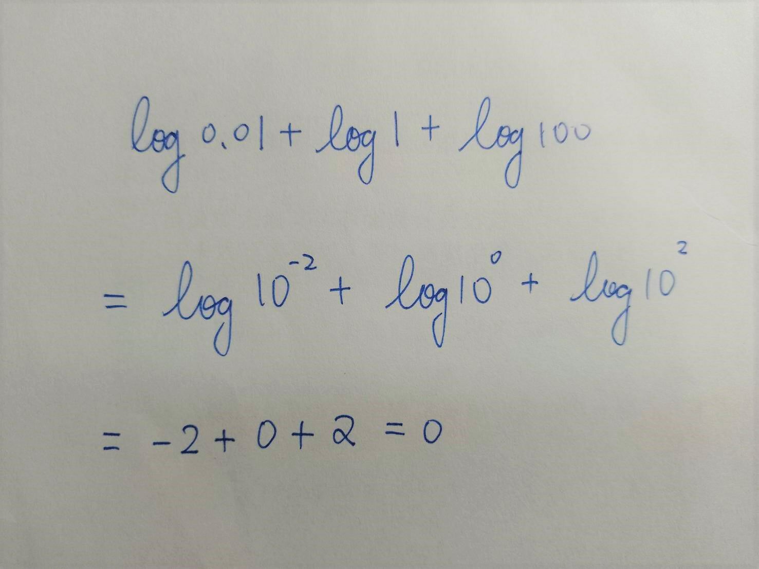 60. log 0.01 + log 1 + log 100 =?