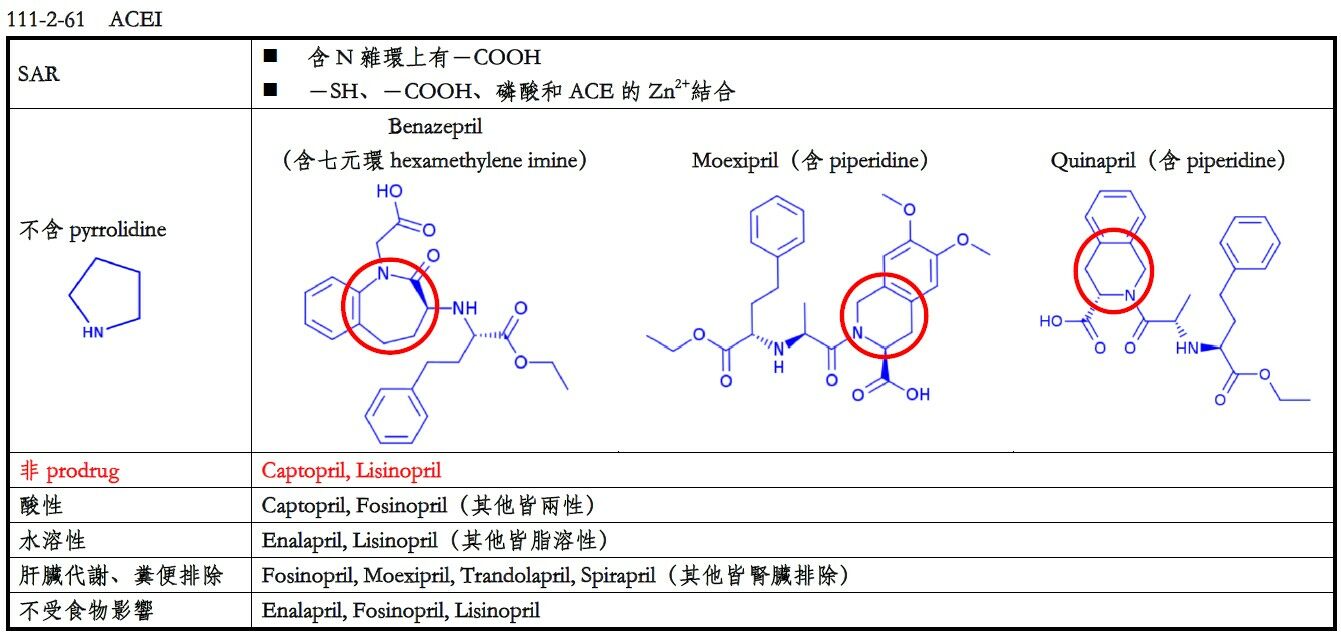 61.下列ACE抑制劑的作用,何者不需經過bioactivation?