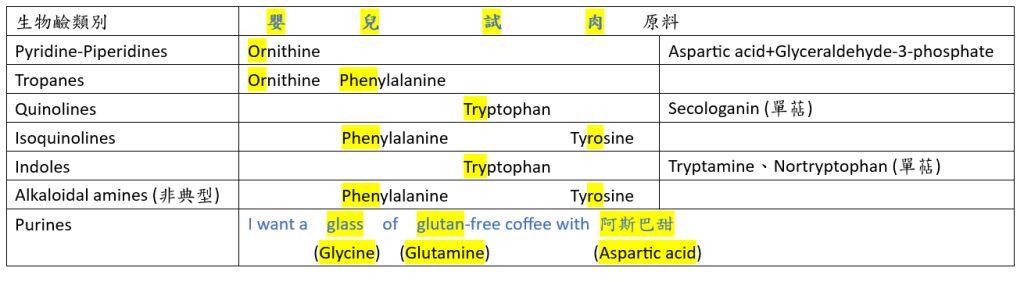 專技 - 藥物分析與生藥學(包括中藥學) -111年 - 111-2 專技高考_藥師(一):藥物分析與生藥學(含中藥學)#109858答案:(C) Alkaloidal amines (生物鹼胺):phenylalanine 苯丙胺酸、tyrosine 酪胺酸