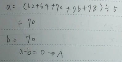 數學成績的算術平均數為 a 、中位數為 b ,試求 a − b 之值?