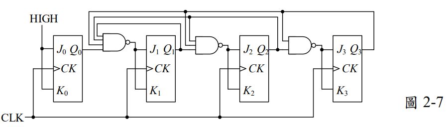 7.請問圖2-7之計數器,若電路狀態的呈現以Q