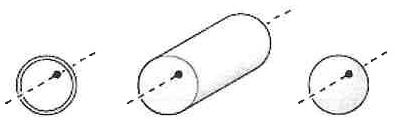 8. A hoop, a solid cylinder, and a solid sphere all have the same mass m and the same radius R. Each is mounted to oscillate about an axis a distance 0.5R from the center. The axis is perpendicular to the circular plane of the hoop and the cylinder and to an equatorial plane of the sphere as shown below. Which is the correct ranking in order of increasing angular frequency ω (from highest to lowest)?