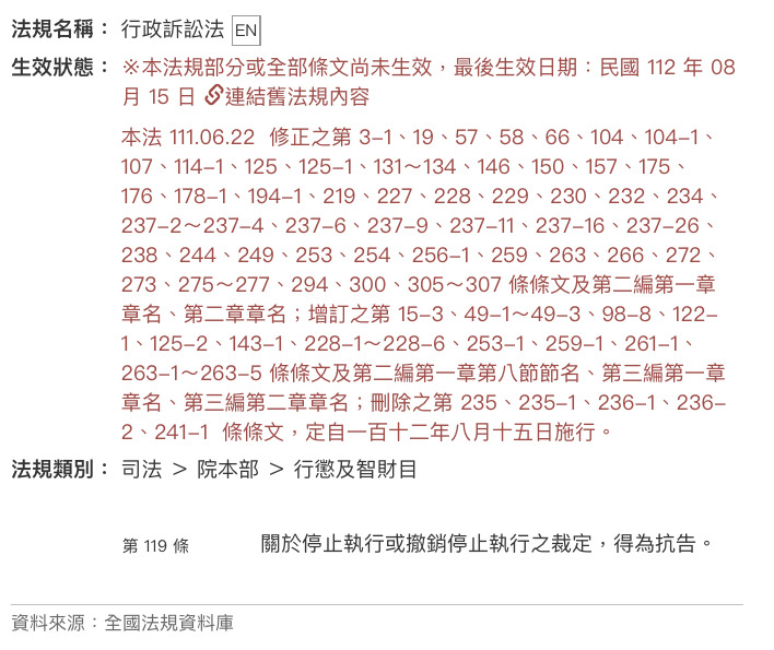 (C)停止執行裁定,得停止原處分或決定之效力或其執行