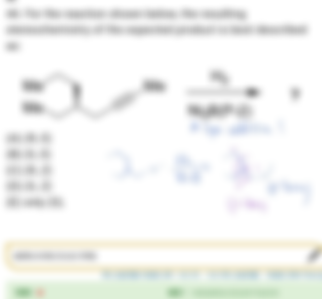 44. For the reaction shown below, the resulting stereochemistry of the expected product is best described as: (A) (R, E) (B) (S, E) (C) (R, Z) (D) (S, Z) (E) only (S).