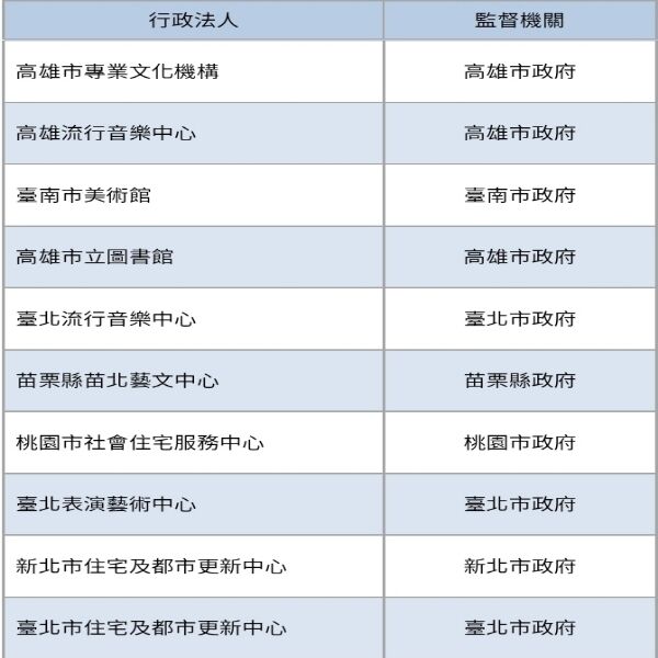 以下是本島的地方行政法人