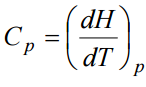 【已刪除】⑵已知熱焓可以表示成溫度與壓力的函數,也就是 H = H(T, P)。當系統壓力與外界 壓力相等時,定義系統在定壓下的熱容量為