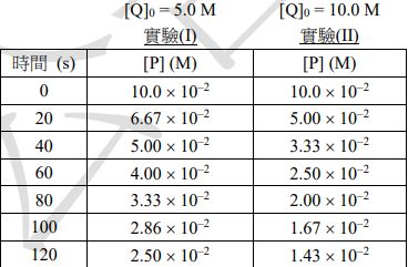 26. 某化學反應:P + 2Q R + S,其實驗數據如下表所示。