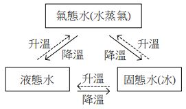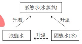 20. 《十二年國民教育課程綱要-自然科學領域》中對「建立模型」有以下的具體描述:中年級學生能經由觀察自然界 現象之間的關係,理解簡單的概念模型,進而與其生活經驗連結。以水的三態為例,下面那一個能讓學生建立正確水的三態變化模型? (A)(B)(C)(D)