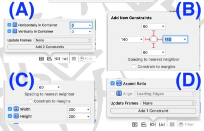 17.您是一位 iOS 開發人員,要將 A 矩形物件固定寬高,並且不會受限於使 用者手機的螢幕大小,請問您該對 Auto Layout 下何種條件?(A) ( A ) (B) ( B ) (C) ( C ) (D) ( D )