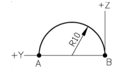 51. 如下圖所示,刀尖自 A 點→B 點之圓弧銑削路徑程式為
