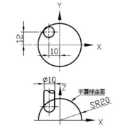 49. 如下圖以 R2 球銑刀銑削圖示半圓槽,在不啟動刀徑補正下,由點 1→點 2 之球刀中心路徑程式為
