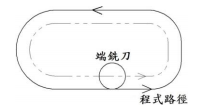 77. NC 銑床上,加工路徑及銑刀關係如圖所示,所須使用的指令為何?