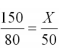 48. 執行程式 G91 G01 X50.0 Y100.0 Z150.0 F80 ; 刀具在 Z 方向移動 100mm 時,X 方向移動量計算式為(A)