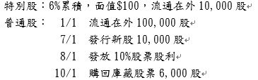 該公司稅後淨利$345,000,該公司01、02年均未發放特別股股利,試計算普通股每股盈餘?