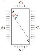 【已刪除】一、岩石試體內含一條節理面AB(其傾角可為任一β 度數,如下圖所示),已知節理面之 剪力強度參數c