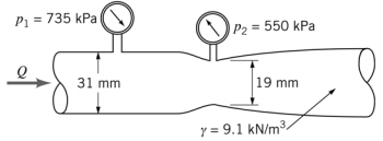 【已刪除】三、如圖所示,假設流動為理想狀況,試決定流經文氏計的流率,γ = 9.1kN/m