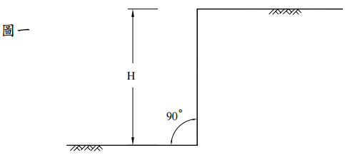 【已刪除】二、如圖一所示之c - φ地盤開挖工程。預計開挖深度(H)為 3.0 m。地盤之c = 15 kN/m