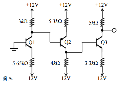 |= 0.7V 與 β = ∞ ,分別求出圖三中三個電晶體的集極電壓 (V