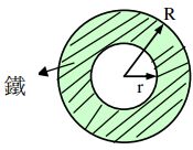 (A) 鐵球殼的內半徑r變大,外徑R變小 (B) 鐵球殼的内半徑r變小,外徑R變大 (C) 鐵球殼的内半徑r和外徑R變小 (D) 鐵球殼的內半徑r和外徑R均變大