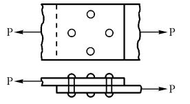 80如【圖80】所示為塔接鉚釘構件,若兩板材寬皆為50mm,板厚 5mm,鉚釘直徑5mm,板材荷重p=2KN, 試求板材的最大拉應力為若干MPa?(A)4(B)6(C)8(D)10