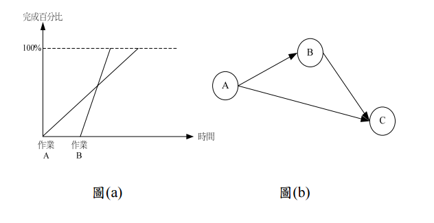 【已刪除】 ⑵若一結點網圖(Activity-on-node, AON)之結果如圖(b)所示,請說明其問題所在 與解決方式。(12 分)
