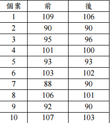 【已刪除】四、高血壓是國人常見的慢性病,為測試運動是否可以降低血壓,徵求 10 名志願者, 每週運動 3 次,每次 30 分鐘,每次運動心跳均要達每分鐘 130 次。在一個月測得 舒張壓(mm-Hg)如下,試以 α=0.05 檢定運動介入能否降低血壓?請附完整統計 假設、計算步驟與結論。(14 分)