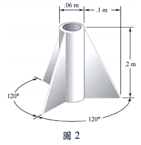 【已刪除】二、如圖 2 為安置旗桿的插座,其構造是由三塊合金銅板焊接在一段鋼管上。銅板的厚 度是 5 mm,質量密度是 10
