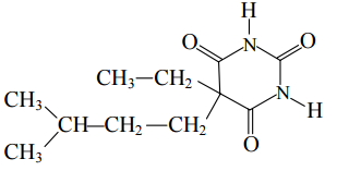 20 臨床上巴比妥酸鹽類(Barbiturates)用於催眠、鎮靜、誘導麻醉及癲癇之治療,下圖化學結構式之巴比妥 酸鹽藥物,俗稱為何? (A)紅中 (B)青發 (C)白板 (D)火狐狸