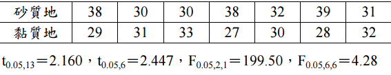【已刪除】五、下列數據為調查 A 品種毛豆於砂質地及黏質地之抽樣結莢數,試問此二質地上毛豆 之變異性是否相同?(α=0.05)(10 分)