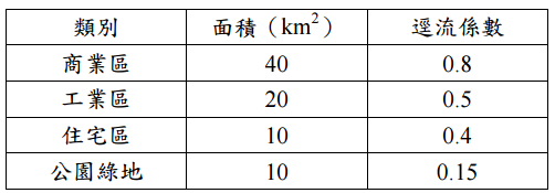 【已刪除】三、某城市土地利用情況及其逕流係數如下表所示:
